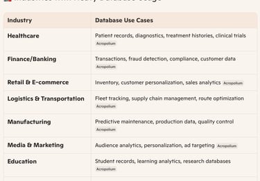 Industries that use database and why.